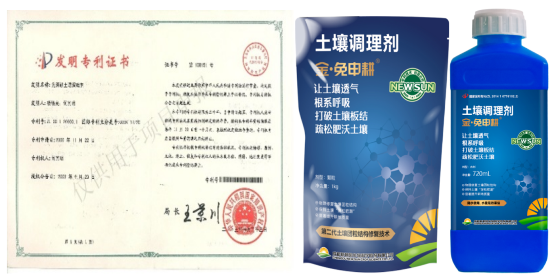 成都新朝陽作物科學股份有限公司研發的土壤團粒結構修復劑“免申耕”(2002年完成登記)暢銷全國多年,和市面上的其他土壤調理劑有很大的區別,不僅用量小,而且通過綠色生產資料認證,對土壤和作物無毒副作用,打破土壤板結,疏松肥沃土壤深受廣大農戶的認可。
